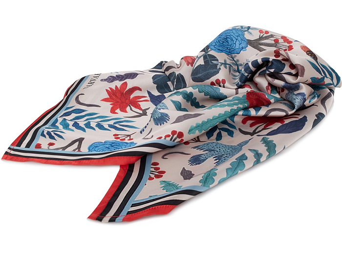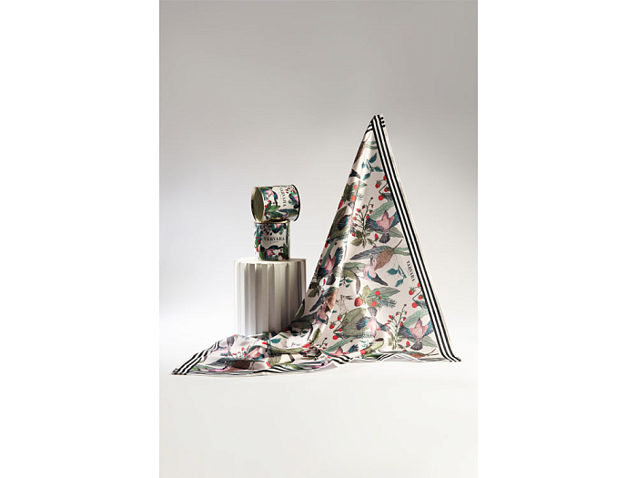 Платок из искусственного шелка саржевого плетения (твил) размером 70*70 см., с авторским принтом «Фазаны».