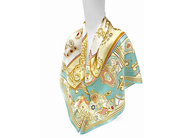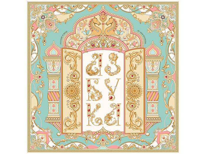 Платок “Русская Азбука” от дизайнера Нины Ручкиной - это зашифрованное послание предков, явившееся на тонкой материи. Мотивы русской архитектуры обрамляют Буквицы, щедро украшенные ажурными орнаментами.