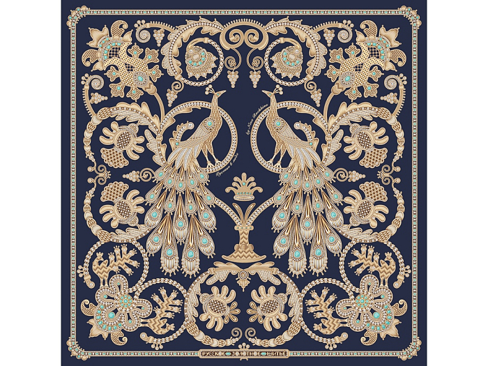 Платок «Русское золотное шитьё» посвящён драгоценному старинному русскому рукоделию. Дошедшие до нас памятники шитья, выполненные русскими мастерицами, являются произведениями высокой культуры. В изделиях сочетаются талант художника и тонкий вкус, духовное богатство, исполнительское мастерство вышивальщиц.
