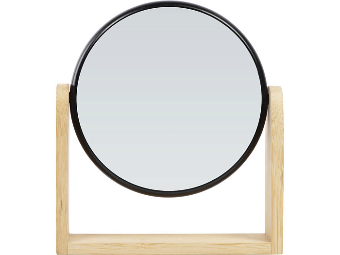 Стильное двустороннее зеркало с бамбуковой подставкой в черной рамке. Одна сторона показывает стандартное отражение, другая - с 2-хкратным увеличением.
