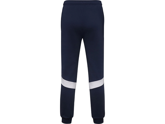 Спортивные брюки с эластичным поясом и шнурком. Боковые карманы закрываются на молнию. Контрастные лампасы белого цвета. Низ с манжетами из риба 1х1. Может быть с комбинирован с курткой Leros.