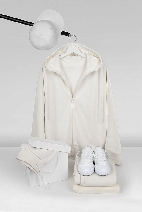 Базовая повседневная одежда актуального покроя в стиле унисекс разработана в рамках единой коллекции и легко собирается в комплекты. Специально спроектированные лекала и технологии пошива открывают простор для любых вариантов кастомизации и нанесения изображений. На видимой части изделий нет лейблов с айдентикой бренда, а название бренда с уходника легко удалить.