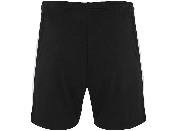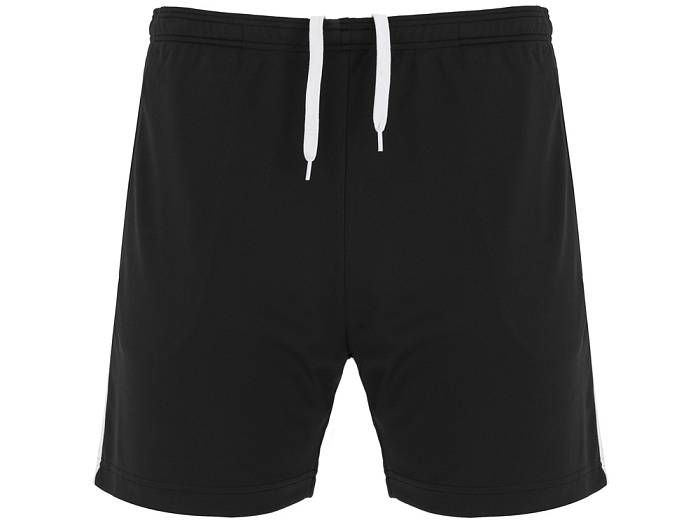 Спортивные шорты. Боковые карманы застегиваются на молнию. Эластичный пояс с контрастным регулируемым шнурком. Легкий и дышащий материал, подкладка из сетки. Контрастные лампасы в боковых швах.