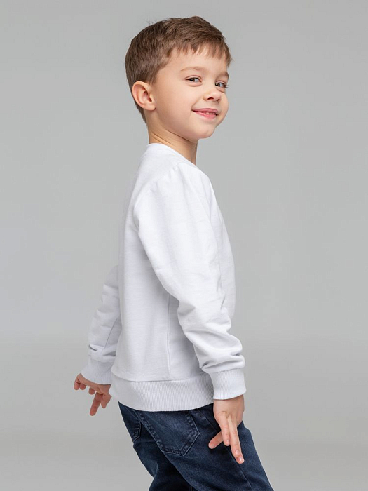 Легкий детский свитшот. Выполнен из высококачественного полотна, которое прошло активное крашение, предварительную термоусадку и обработку энзимами.