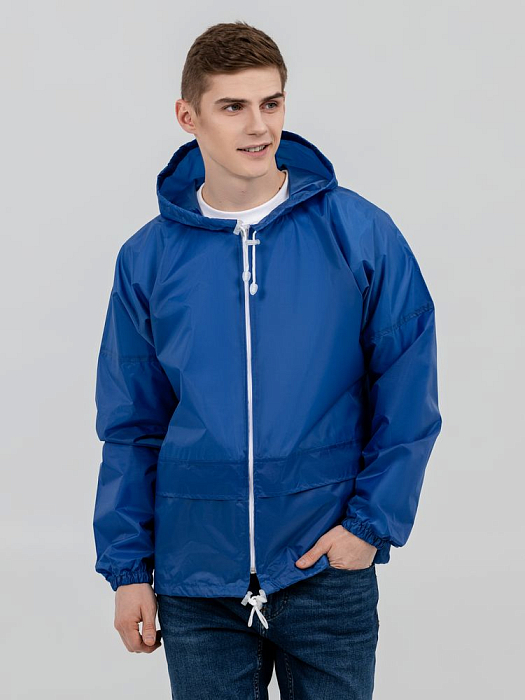 Укороченный дождевик свободного кроя из ткани таффета с влагозащитным покрытием. Складывается в мешочек — удобно брать с собой.