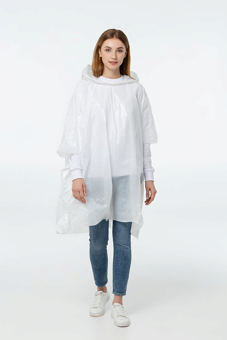 Дождевик-пончо с капюшоном и укороченным рукавом из полиэтилена низкого давления (ПНД).