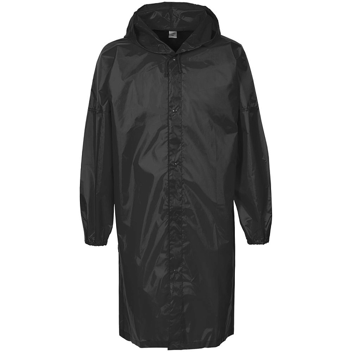 Плащ-дождевик из ткани таффета на кнопках с капюшоном.
