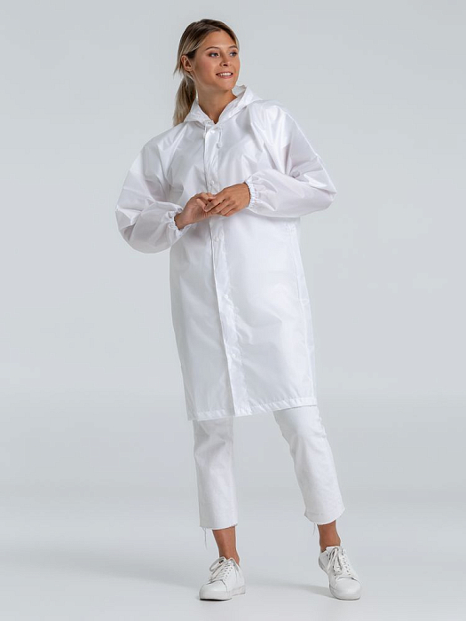 Плащ-дождевик из ткани оксфорд на кнопках с капюшоном.
