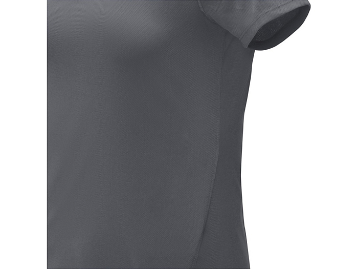 Женская стильная футболка поло с короткими рукавами Deimos. Возможность нанесения на внутреннюю часть фирменной символики. Планка с двумя пуговицами. Для большего комфорта основной ярлык можно оторвать или отрезать. Обработка воротника обтачкой из основной ткани. Передний боковой шов со строчкой «флатлок». Сетчатая ткань с покрытием cool fit 100% Полиэстер, 105 g/m2.