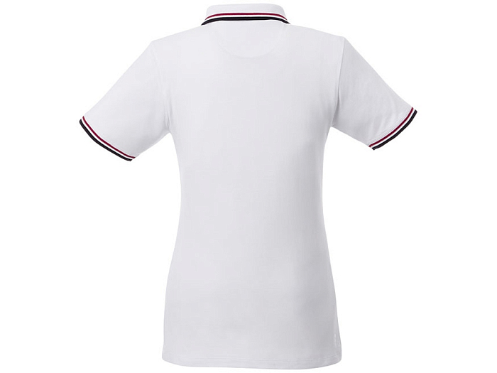 Женская футболка поло Fairfield с коротким рукавом с проклейкой. Воротник гладкой вязкой в рубчик. Манжеты гладкой вязкой в рубчик. Контрастные окантовки. Планка с тремя пуговицами (мужская модель).Гравированные пуговицы в цвет изделия. Комфортный ярлык-трансфер на изделии. Трикотажное пике, 100% хлопок. 180 г/м².