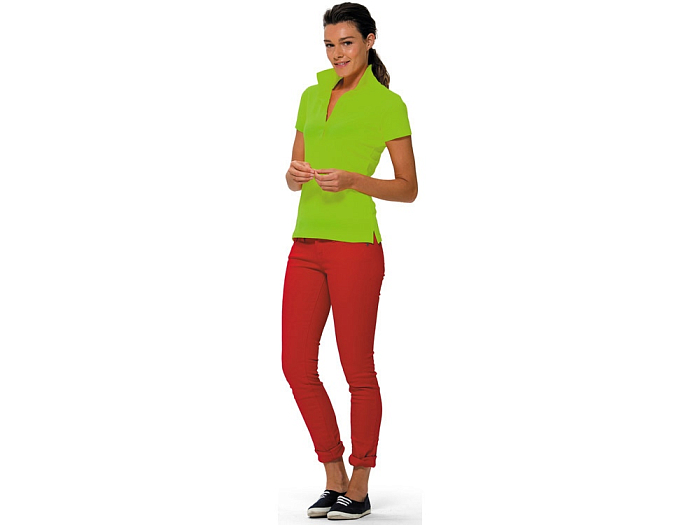 Женская рубашка-поло First. Воротник 1х1. Обшивка внутри воротника. Мужская и детская модели с 2 пуговицами, женская - с 4 пуговицами. Пуговицы с гравировкой в тон. Пике, 100% хлопок. 160 г/м2.