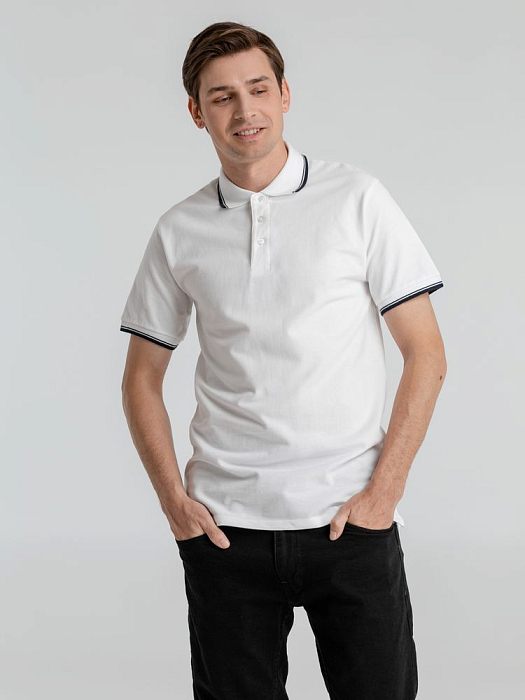 Рубашка поло мужская с контрастной отделкой Practice 270, белый/темно-синий