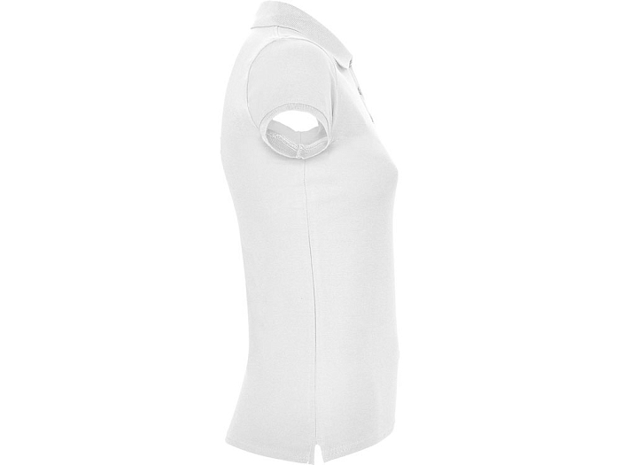 Поло с коротким рукавом для женщин приталенного силуэта. Воротник и манжеты из риба 1х1, отделка горловины внутри тесьмой. Элегантная планка застегивается на 3 пуговицы. Разрезы в боковых швах.