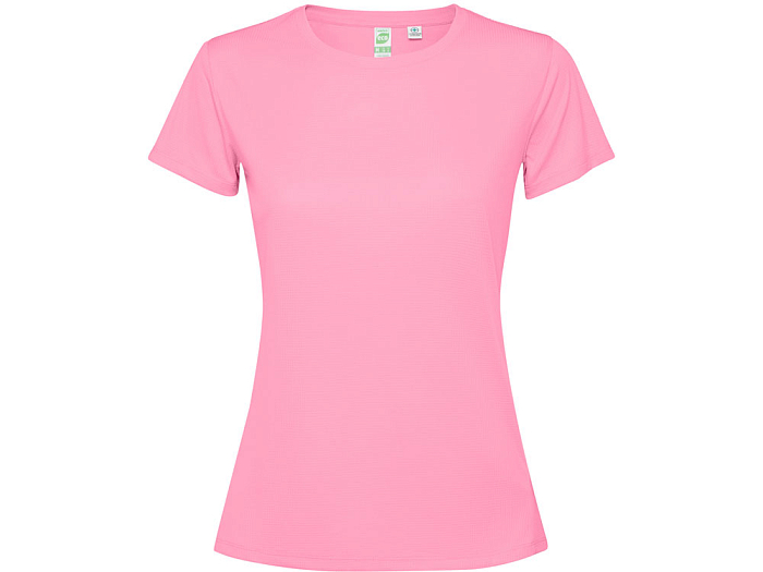 Женская футболка с коротким рукавом из технологичного полотна. Отстрочки в тон. Спинка с удлинением. Боковые швы со смещением вперед.