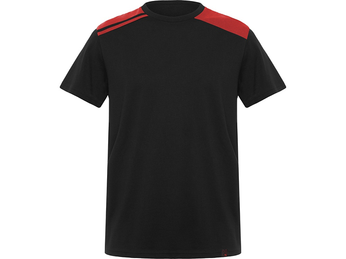 Футболка с короткими рукавами. Круглая горловина с контрастными закрытыми внутренними швами. Контрастные плечевые вставки и детали.