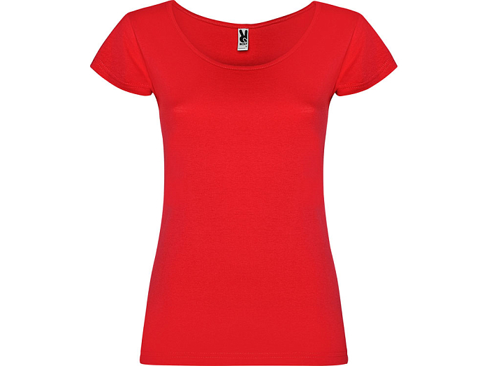 Прилегающая женская футболка с глубоким вырезом, обработанным рибом.