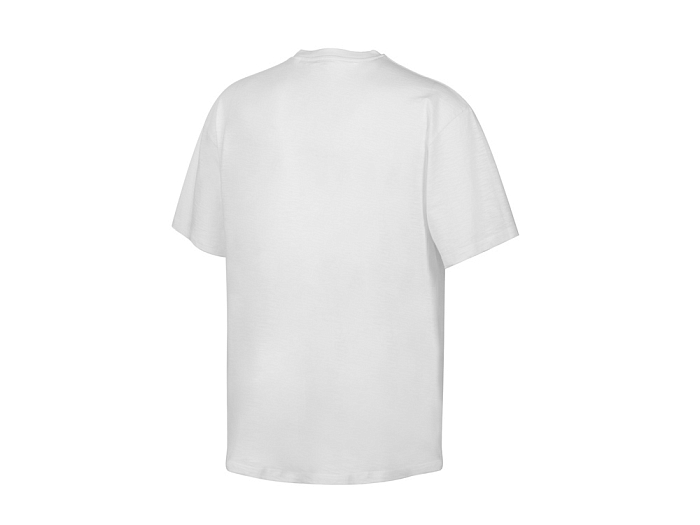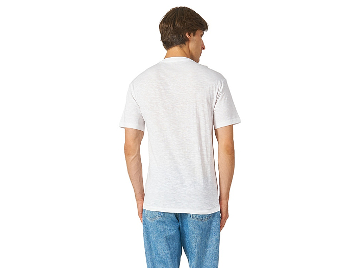 Полотно футболки имеет необычную структуру - с протяжками, но при этом гладкую поверхность, что обеспечивает идеальную поверхность для нанесения: прямая печать, трафаретная или термотрансфер прекрасно ложатся на такое полотно. Декоративная отстрочка по низу рукавов и изделия, а также отстрочка по горловине позволяют футболке дольше сохранять форму.