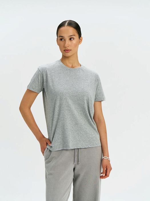 • Круглый воротник выполнен резинкой с эластаном и защищен от деформации укрепляющей тесьмой