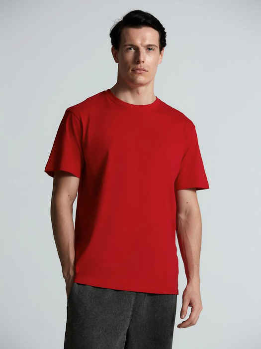 Базовая футболка унисекс без боковых швов. Полотно прошло активное крашение и предварительную усадку, благодаря чему изделие надолго сохраняет цвет и форму.