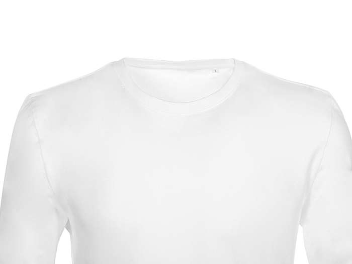 Футболка с длинным рукавом комфортной посадки с боковыми швами. Горловина обработана рибом 1х1 и тесьмой по спинке. Футболка выполнена из хлопкового джерси.