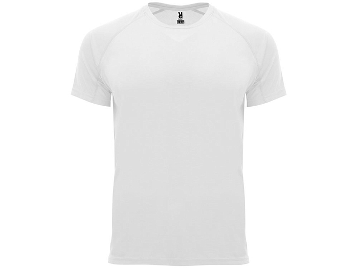 Спортивная футболка с коротким рукавом реглан. Круглый вырез горловины с отделкой плоским швом. Рукав сложного кроя для обеспечения дополнительного удобства при занятиях спортом. Отделка плоским швом с застилом по пройме и рукавам.