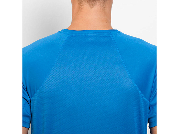 Спортивная футболка унисекс из технологичного полотна. Круглый вырез горловины укреплен со стороны спинки контрастной тесьмой. Спинка со вставкой из 3D сетки. Легко сохнущая дышащая модель