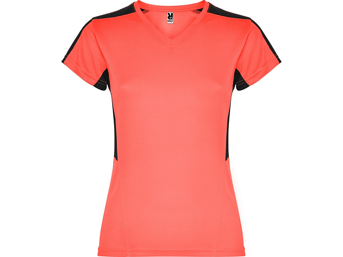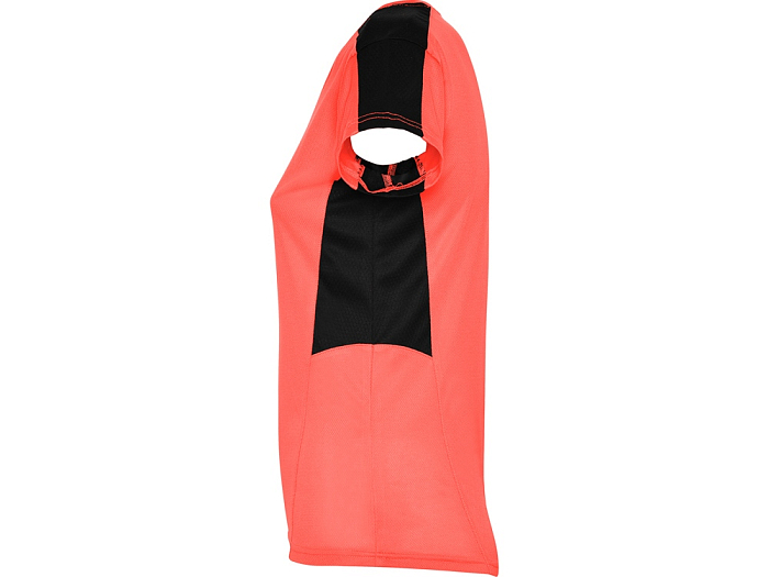 Женская футболка с коротким рукавом. V-образная горловина. Комбинация из 2 полотен контрастного цвета: структурное полотно на полочке и дышащая 3D сетка на плечах и боках.