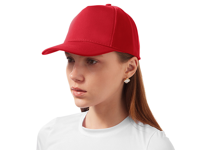 Универсальная 5 панельная бейсболка из структурной ткани, регулировка объема с помощью липучки сзади.