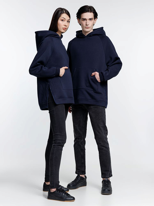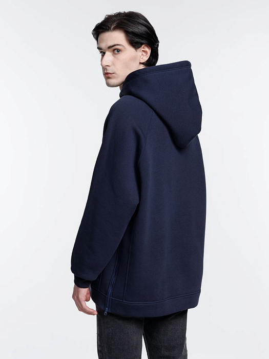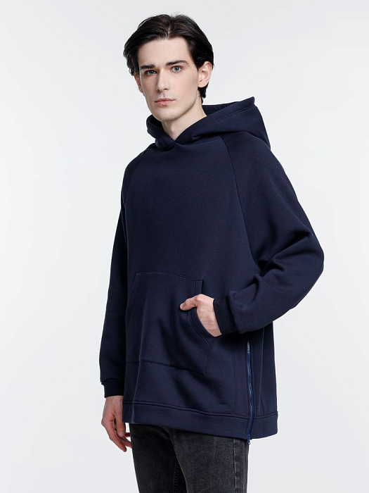 Худи унисекс удлиненного силуэта с молниями в боковых швах.