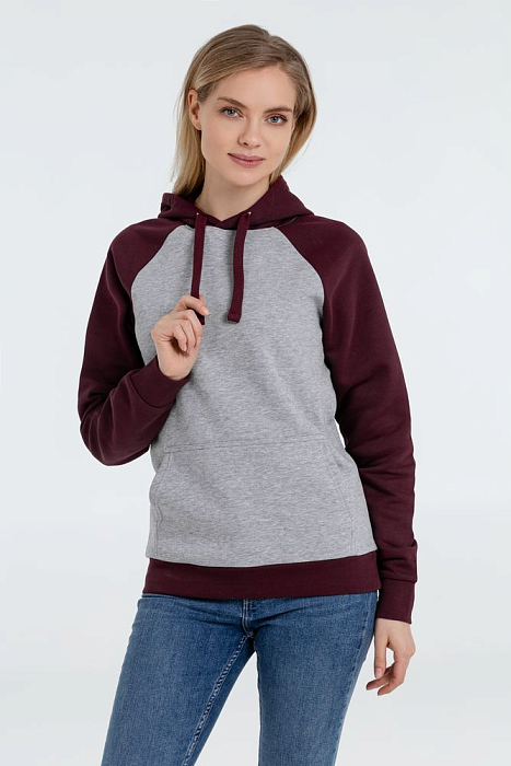 Толстовка унисекс Seattle, серый меланж с бордовым