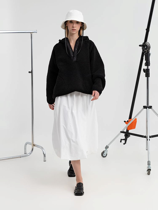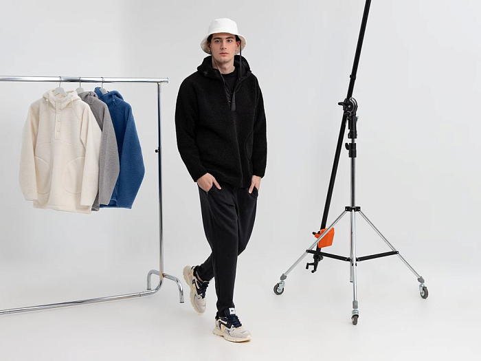 • Резинка с утяжкой на капюшоне и по низу изделия