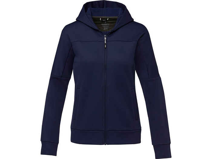 По центру спереди расположена обратная застежка-молния. Карманы спереди. Внутренняя сторона покрыта ворсом. Петля для подвешивания с фирменной символикой. Горловина из атласа. Внутреннее выходное отверстие для медиа с направляющей для шнура. Полумесяц. Главный лейбл нанесен методом термоприклеивания, удобным для размещения рисунков на ткани.