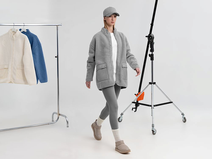 Куртка на молнии из современного двухслойного материала — модный искусственный мех снаружи и уютный флис внутри. Накладные карманы из гладкого нейлона создают заметный визуальный контраст и делают куртку Oblako по-настоящему стильным предметом гардероба.