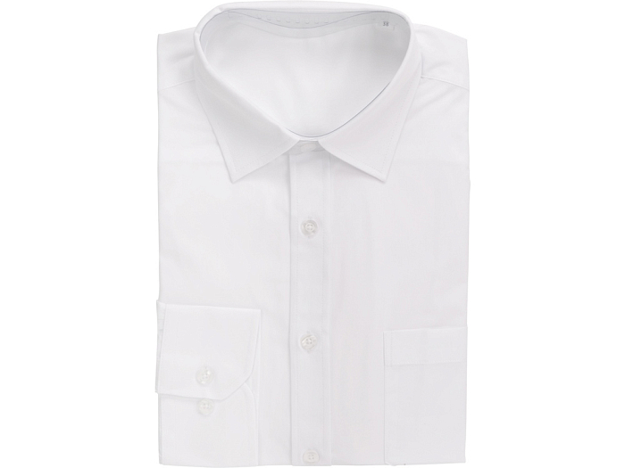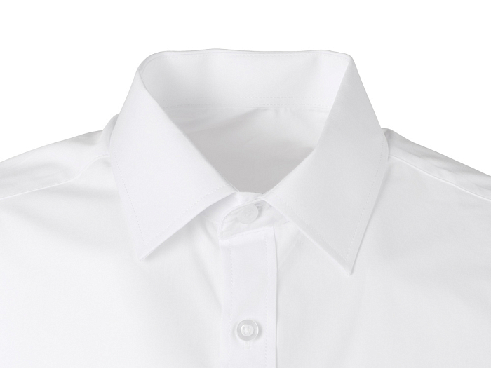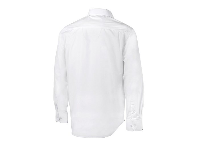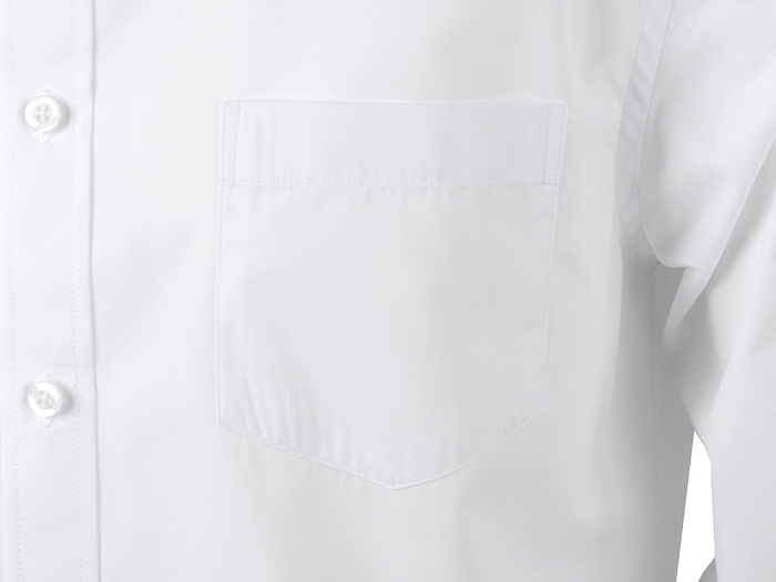Рубашка мужская с длинным рукавом на семи пуговицах. Накладной карман на груди слева, на спинке складки из-под кокетки, манжеты с двумя пуговицами и пуговица по планке рукава.