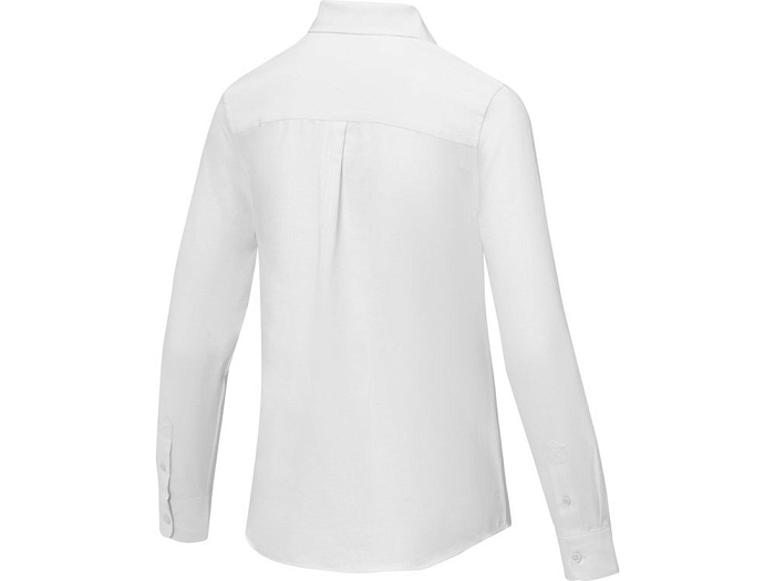 Pollux женская рубашка с длинными рукавами. Отрывной-отрезной лейбл. Регулируемая манжета рукава с одной складкой. Пуговицы в тон. Встречная складка на спинке. Ткань Оксфорд 55% хлопка, 45% полиэстера, 130гр.