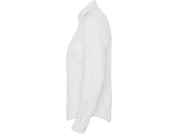 Женская рубашка с длинным рукавом, накладной карман слева. Планка на пуговицах. Отложной воротник на стойке, могут встречаться изделия, где воротник продублирован пуговицами. Манжета регулируется по ширине с помощью 2-х пуговиц. Кокетка на спинке.