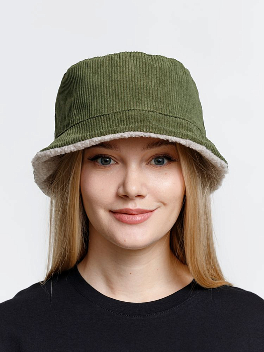 Теплая двухсторонняя панама. Одна сторона выполнена из вельвета, другая — из синтетической шерпы.