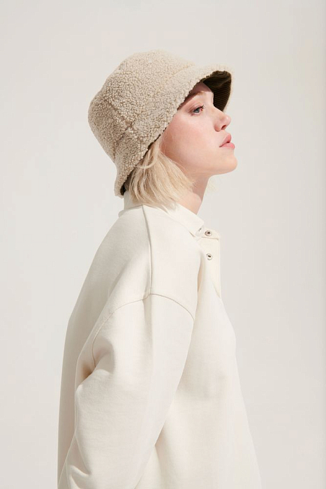 Теплая двухсторонняя панама. Одна сторона выполнена из вельвета, другая — из синтетической шерпы.