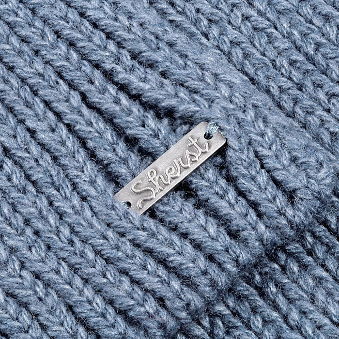 Металлический шильд с названием бренда расположен по нижнему краю изделия, что оставляет достаточно места для пришива лейбла или шильда с логотипом заказчика.