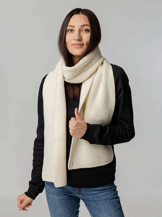 Шарф Tommi из полушерстяной пряжи актуальных приглушенных оттенков сочетает в себе комфорт и стиль, идеален для создания расслабленного повседневного образа.