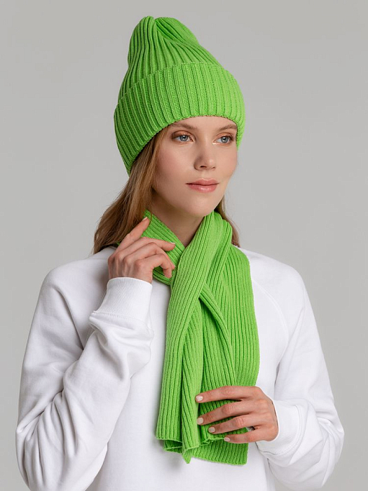 Однослойный шарф фактурной вязки с отверстием для быстрого и удобного завязывания.