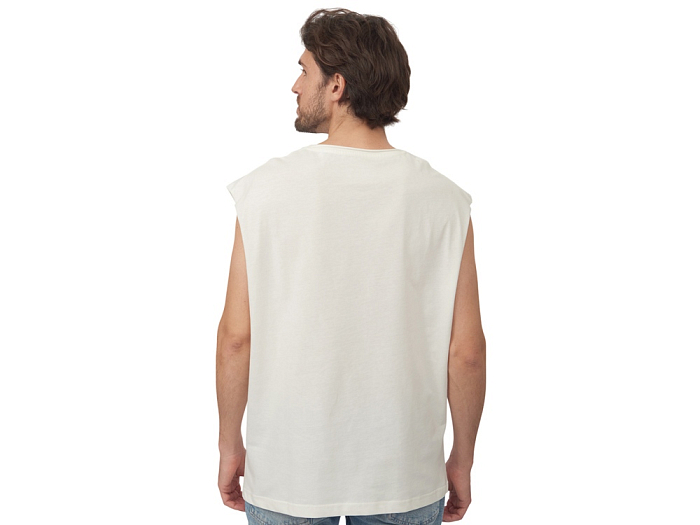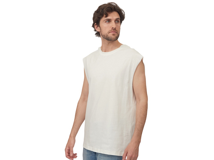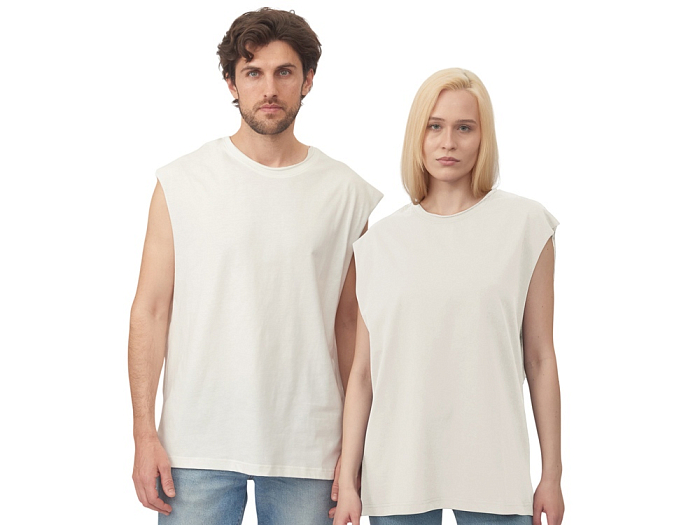 Майка унисекс расширенного силуэта со спущенным плечом, выполнена из плотного джерси 180гр.