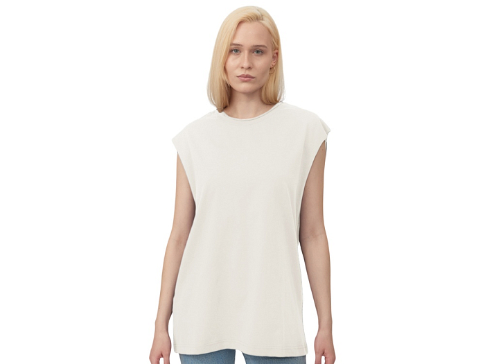 Расслабленная посадка модели и необработанные швы проймы и края горловины позволяют чувствовать себя комфортно и оставаться на волне трендов.