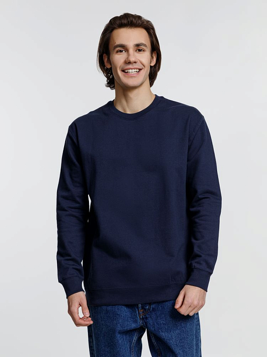 Свитшот унисекс из хлопка и переработанного полиэстера с круглым вырезом и втачным рукавом.