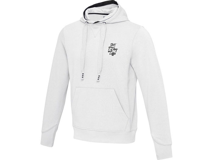 Боковые панели из гладкого трикотажа в рубчик. С V-образной вставкой из гладкого трикотажа в рубчик в центральной части. Манжеты из гладкого трикотажа в рубчик с V-образной формой. С подшивкой из гладкого трикотажа в рубчик. Капюшон на кулиске. Карман "кенгуру". в форме полумесяца. Подкладка для капюшона из тонкого гладкого трикотажа. Выгравированные старинные серебряные люверсы. Атласная лента на шее. Лента контрастного цвета с рисунком «елочка». Ворсованная внутренняя часть для ощущения мягкости, тепла и комфорта.