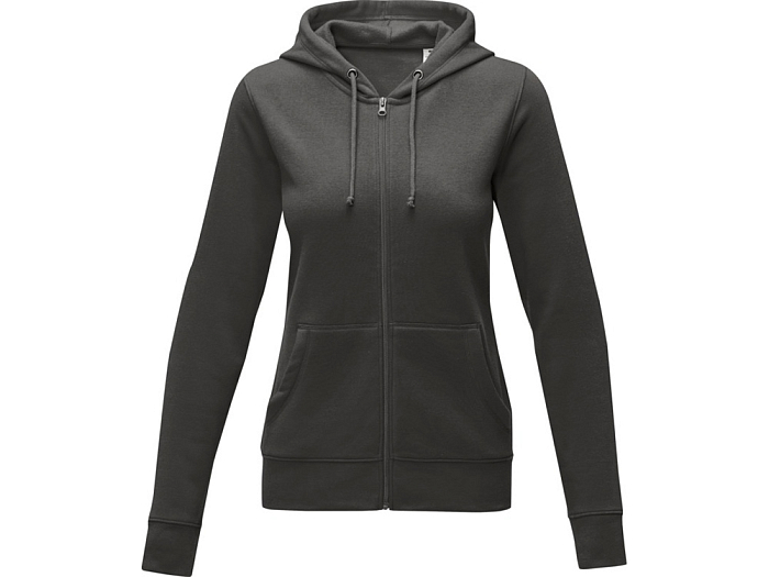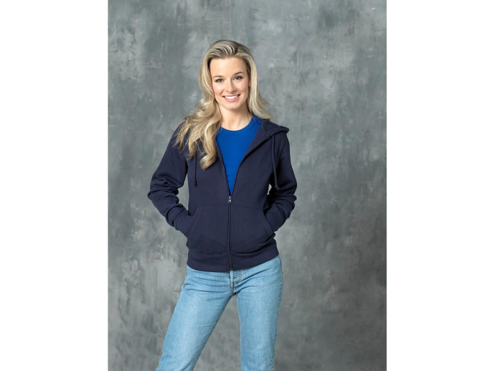 Женская толстовка на молнии Theron. Основная этикетка, которую можно оторвать или отрезать, без неудобных пришитых ярлыков. Завязки на капюшоне. Расположенная по центру молния. Карман «кенгуру». С подшивкой из гладкого трикотажа в рубчик. С манжетами из гладкого трикотажа в рубчик. Внутренняя сторона покрыта ворсом. Тесьма из основного материала по внутренней стороне горловины. Придающие форму швы и зауженная талия для ровного прилегания. Трикотаж 50% Хлопок, 50% Полиэстер, 240 g/m2.