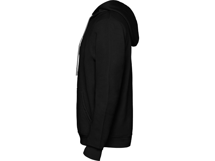 Худи с капюшоном и шнурками. Отделка горловины спинки внутри тесьмой, Риб 1х1 по низу изделия и манжетам. Карман кенгуру.