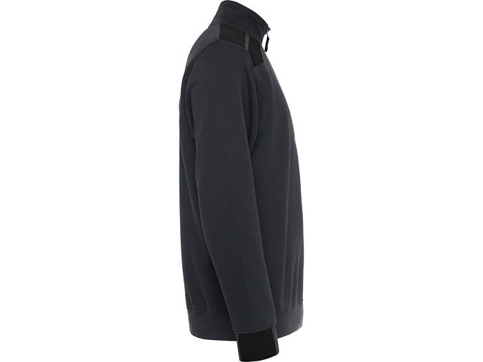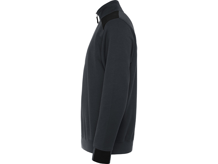 Толстовка с воротом- стойкой на молнии с сочетанием двух цветом. Половина манжет и низ изделия из рибового полотна 1х1. Укрепляющая отстрочка по внутреннему воротнику. Контрастные плечи , детали, молния и манжеты