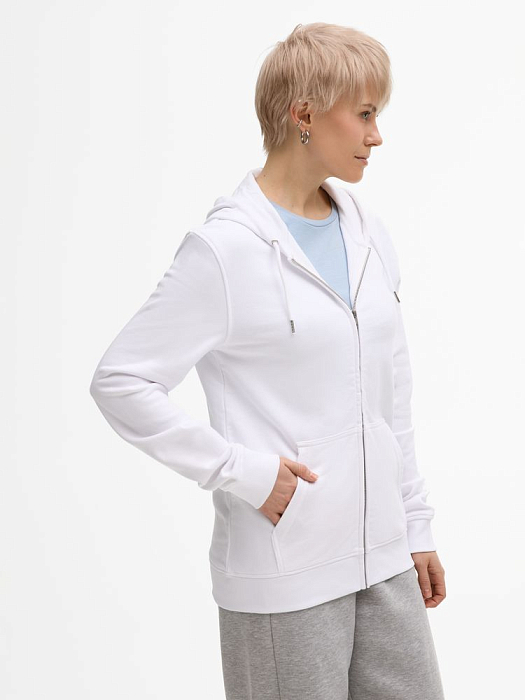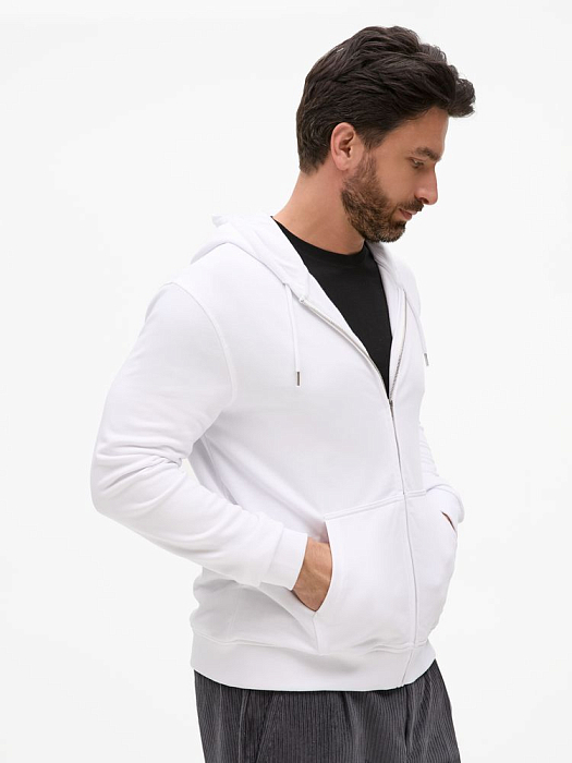 Базовая толстовка унисекс на молнии выполнена из органического хлопка и переработанного полиэстера.