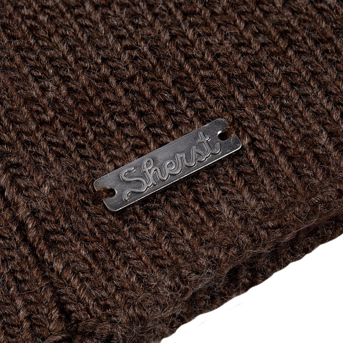 Металлический шильд с названием бренда расположен у заднего шва шапки. Это оставляет место спереди для пришива лейбла или шильдика с логотипом заказчика.